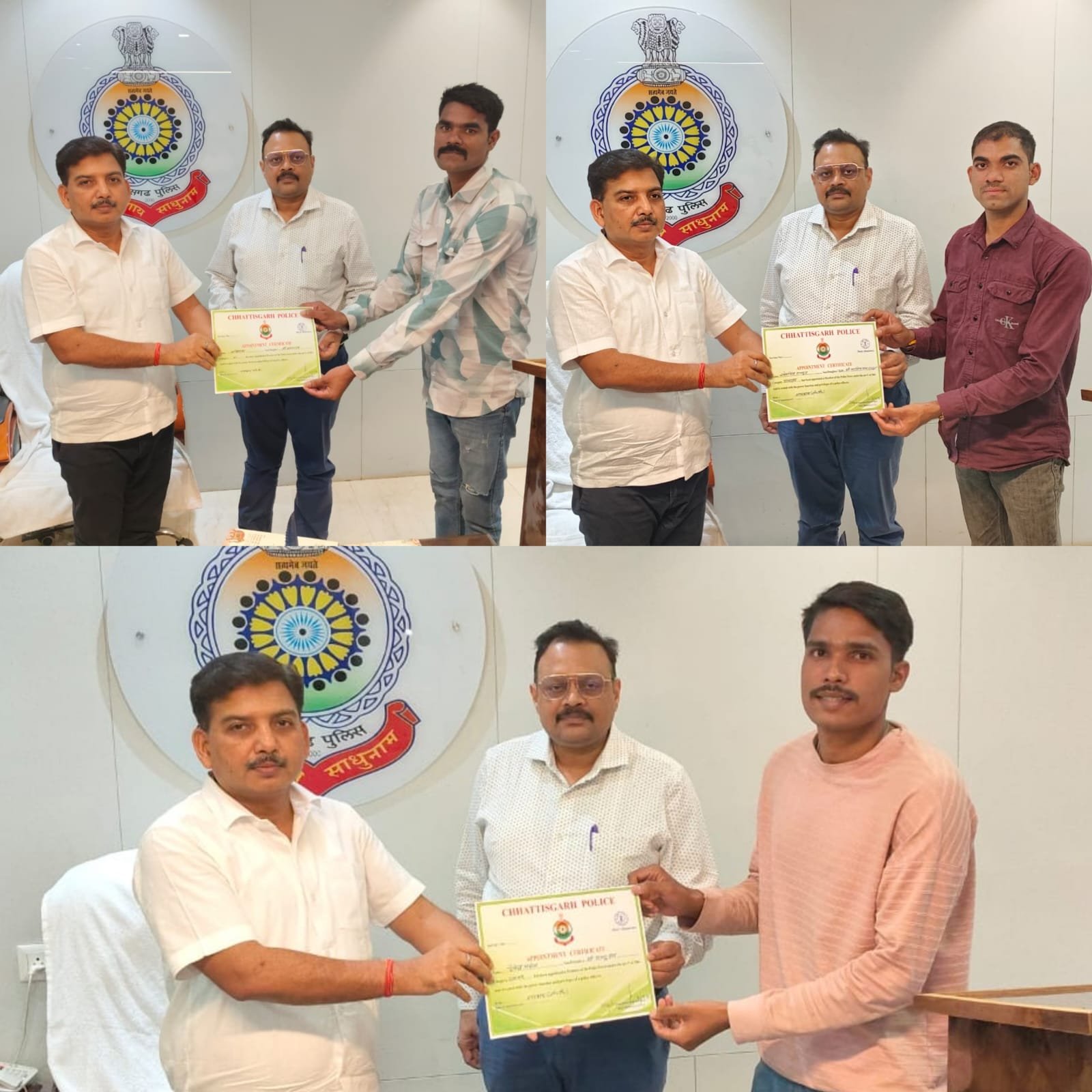 बेमेतरा। पुलिस उप महानिरीक्षक रामकृष्ण साहू (भा.पु.से.) के द्वारा पुलिस अधीक्षक कार्यालय बेमेतरा में छत्तीसगढ़ जिला पुलिस बल आरक्षक संवर्ग 2023-24 आरक्षक भर्ती के अंतर्गत दुर्ग रेंज में बेमेतरा जिले के रिक्त आरक्षक (जी.डी.) पद के लिए चयनित नवनियुक्त आरक्षकों के दस्तावेजों एवं चरित्र सत्यापन उपरांत उन्हें नियुक्ति पत्र प्रदान कर बधाई एवं शुभकामनाएं दी गईं। इस अवसर पर 03 नवनियुक्त आरक्षकों को नियुक्ति पत्र प्रदान किया गया जिनमें देवेन्द्र जंघेल, खेमसिंह राजपूत, अविनाश शामिल है।