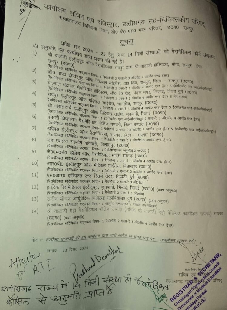छत्तीसगढ़ में चल रहे पैरामेडिकल शिक्षा के नाम पर बड़े पैमाने पर छात्रों के भविष्य से खिलवाड़ किया जा रहा है।